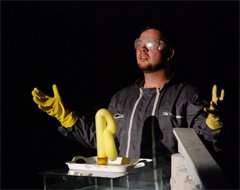 Ahogy sok szórólapon, és plakáton láthattuk, vasárnap délután 3-kor megkezdődött az Egyetemi Színpad Társulatának fesztiválja. Barátaimmal időben érkeztünk, a szűkös helyen még bőven volt hely, bár a vetítésen és a 4 előadáson hol itt, hol ott foglaltunk széket. Egy kortárs újságíró barátommal az előtérben futottam össze, így hát az ő és a média-szakos társaim kritikus vénáival voltam körülvéve. A kopasz énekesnő című abszurd komédia rögtön lekötötte a figyelmemet, mivel anglisztika szakos hallgató vagyok, és fokozott érdeklődéssel tekintek minden “angolszász” témájú dologra. Azonban a második előadás érkeztével éreztem az igazi áttörést, a komolyságot. A Feleselők Színpad veszprémi csoportja – már amennyire csoportnak lehet két embert hívni– Szilágyi Andor A bárány megkísértése című történelmi abszurdját adták elő 45 percben. A szereplők: Jakab Ádám és Ács Tamás a Veszprémi Egyetem színháztörténet szakos hallgatói, véleményem szerint magasan vitték a prímet a mai nap előadásai között. Ahogy az első szünetről beértünk a terembe, a színpadon már ült egy fiú talpig fehérben, körülötte eszközök: egy lavor víz, olló, borotva, és távolba meredt tekintettel mozdulatlanul ült, amíg minden el nem sötétedett. Ekkor a néma csendet egy fura alak léptei törték meg, aki kissé tébolyodottnak tűnt, barna szövetkabátját szorongatva ide-oda járkált a háttérben, majd „betért” a borbélyhoz. Az őrült elme kicsit félelemkeltő volt, elvont beszédében Linz városát istenítette, a háború fontosságát hangsúlyozta és „az ő Németországa” megmentéséről áradozott. Mint később kiderült, paradox helyzet állt fel a színpadon, Adolf Hitler egy zsidó származású borbélyhoz ment hajat vágatni és borotválkozni. Őrjöngő elméje megmutatkozott többször is mozdulataiban, kiabálásában, és szinte idegei látszottak a feszültségtől. Ács Tamás kétségkívül remekül alakította „a kitörni készülő vulkánt”. A hajvágás közben a nézőtér felé néztek mindketten egy pontra, mintha a közönség előtt egy tükör lenne, és abban látnák egymást. Tetszett a helyzet komolysága, hogy Tamásnak (Hitlernek) az igazi hajtincseit nyirbálta Ádám (a borbély). Amikor a borotválásra került a sor, Hitler habbal bekenve felpróbált néhány papírból kivágott bajusz-alakot, és az utolsó tipikus, német, határozott jellegű „fogkefe-bajusznál” maradt. A helyzet egyre élesebb lett, szó szerint is, hiszen a pengét elővéve a borotválásnál még a sercegő hangot is hallhattuk, ami még életszerűbbé tette a jelenetet. Hitler dühe kifakadt majd a borbélyt gyilkolásra akarta bírni, amikor a torkánál járt a penge, mondván, hogy „milliók életét megmenthetné”. Sokunkat a hideg rázott. A borbély nem volt képes ilyet tenni, „megölni a Halált”, így bárányként hajtotta el a lehetőséget. Ekkor jött a képbe a cím, és Hitler dühödt elviharzása után a sokkolt közönség ledermedve éledt fel néhány pillanat múlva és vastapssal ünnepelte a két szereplőt.